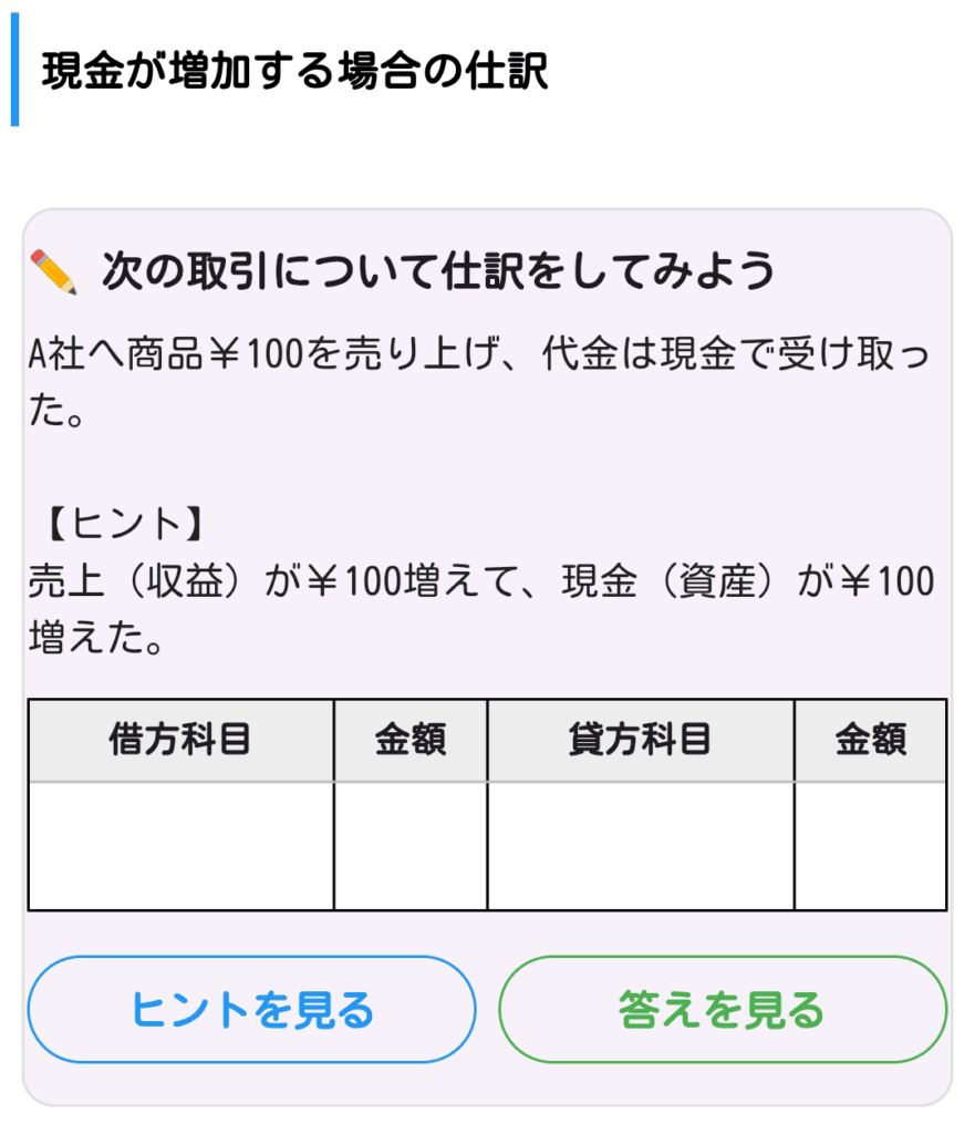 金額は電卓で入力することができるため、いつでもどこでも問題を解くことができます。